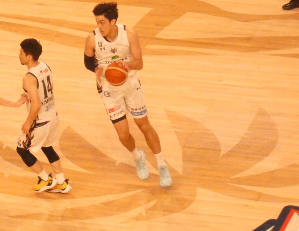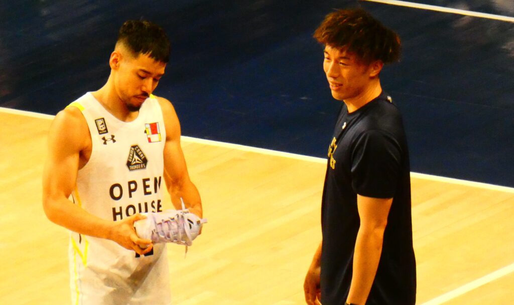 並里選手(群馬)はバッシュ好きなのでハーフタイム中に小野寺選手に「ちょっと脱いでよ」みたいな感じで脱がせてチェックしていました(笑)