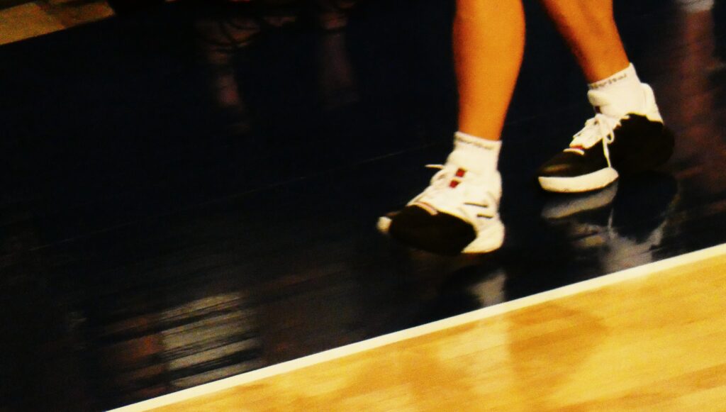 白ユニフォーム着用時には発色のいいシューズを着用しています。ルカレッドはバッシュ好きの松脇選手を代表するシューズ。